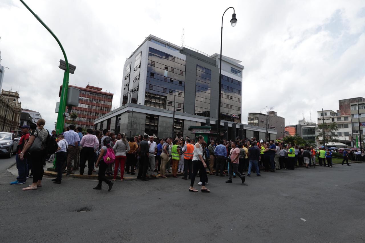 Por su parte, funcionarios de la Asamblea Legislativa, el Tribunal Supremo de Elecciones y la Biblioteca Nacional, entre otros, salieron ordenadamente hacia el Parque Nacional y los de la Caja de Ande a la Plaza de la Democracia.