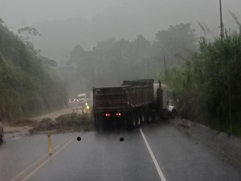 Según la Comisión Nacional de Emergencias (CNE), este incidente en la ruta 32 obedece a las fuertes lluvias que han acaecido en el Caribe.