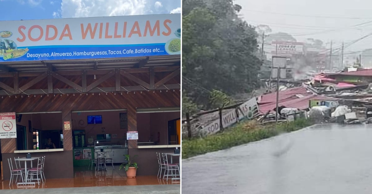 Una cabeza de agua generó destrozos este domingo en Aguas Zarcas de San Carlos y causó afectación en más de cinco locales comerciales, entre los que se encuentra Soda Williams, de Freddy Benavides.
