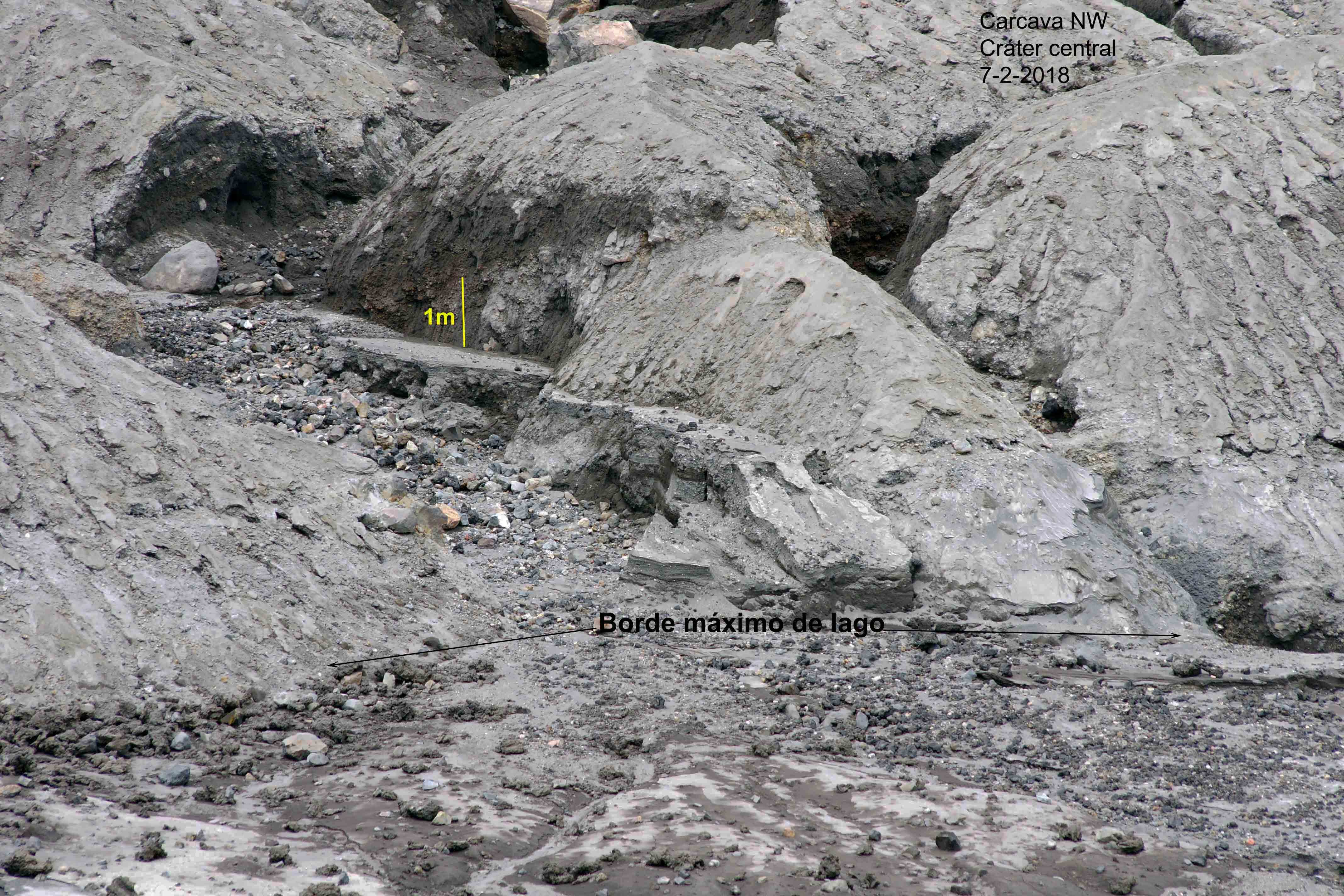 Además, la erosión constante, unida a las lluvias fuertes registradas meses atrás, formaron una enorme laguna de 120 metros de diámetro, que no existía cuando se cerró el acceso al mirador de ese volcán en el 2013.