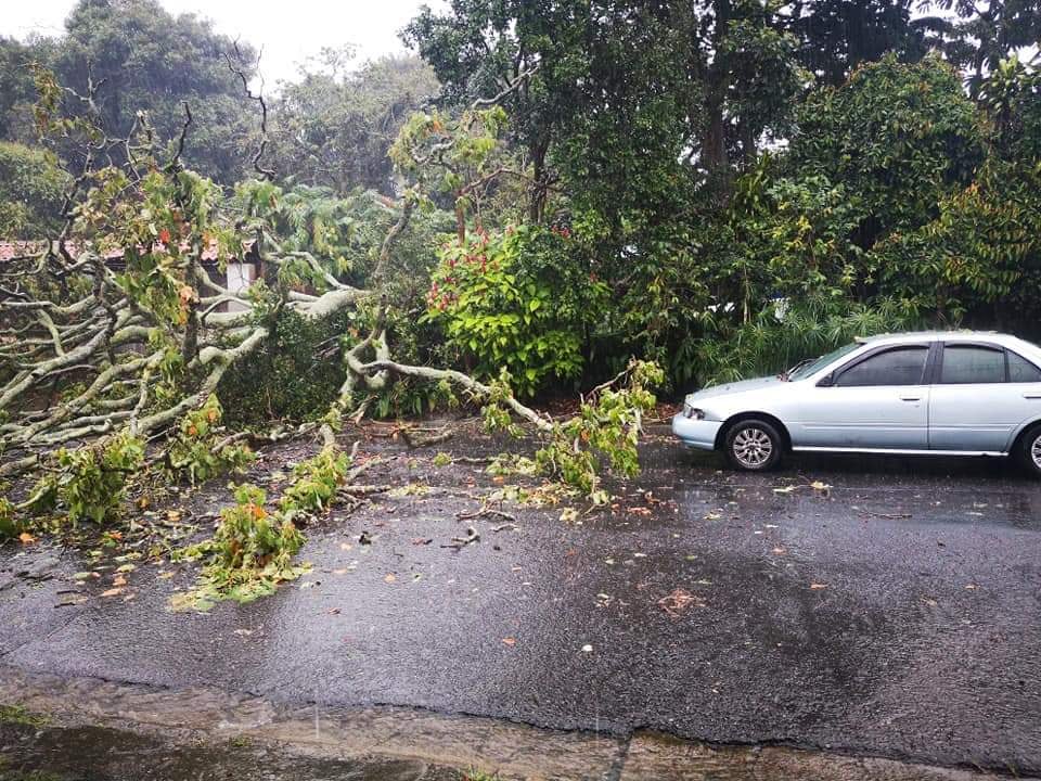 Asimismo, en Los Sitios de Moravia, una quebrada se desbordó, mientras que los fuertes vientos registrados hicieron que un árbol cayera sobre la calle en Dulce Nombre de Coronado. Ambos hechos solo afectaron el tráfico vehicular.