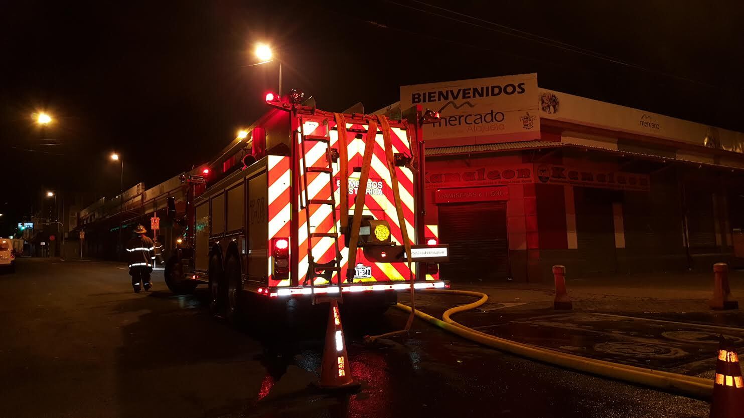 Un incendio, a eso de las 3:06 a. m. de este viernes, destruyó 460 metros cuadrados del mercado municipal de Alajuela, dejando en ruinas 16 locales comerciales.