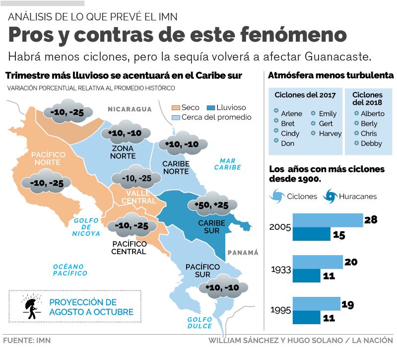 Entre los puntos favorables está la disminución de los ciclones y eso podría dar un alivio al país que en el 2016 sufrió por el paso del huracán Otto y el año pasado por la tormenta tropical Nate.