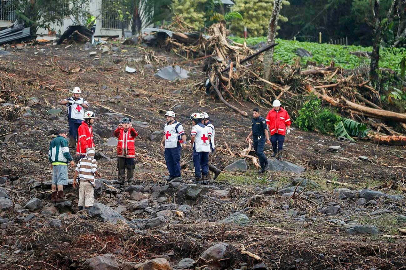 Este viernes, apenas unas horas después de la tragedia, la luz del día iluminó a lo lejos las faldas del volcán Miravalles. En una de sus laderas brillaba una imponente catarata de agua blanca, que sobresalía entre la pared herida del deslizamiento, por allí corrieron palos, tierra y piedras, en medio de la noche.