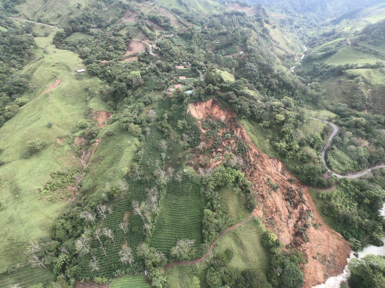 Cultivos de café, plátanos, tomate y algunas especies maderables quedaron entre el barro que fue a dar a orillas del río y que compromete una de las casas en la base. Aunque hay otras viviendas en la corona del desprendimiento, esas por ahora no fueron desalojadas.