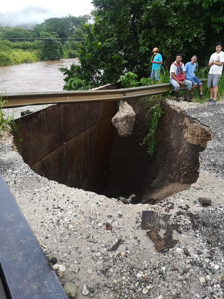 El personal del Consejo Nacional de Vialidad (Conavi) evaluó ese puente, a efecto de determinar si solo se lavó el material o si hay daños estructurales.