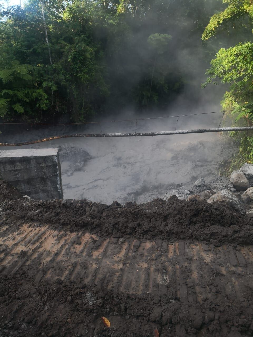 Según el científico, las lluvias en la cima lavan el material volcánico expulsado y por eso algunos vecinos de Aguas Claras han visto cenizas en las aguas de quebradas y ríos que llegan a las partes bajas e incluso peces muertos. Descartó que las erupciones recientes hayan generado lahares y más bien dijo que se trata de ceniza acumulada que las precipitaciones arrastran.
