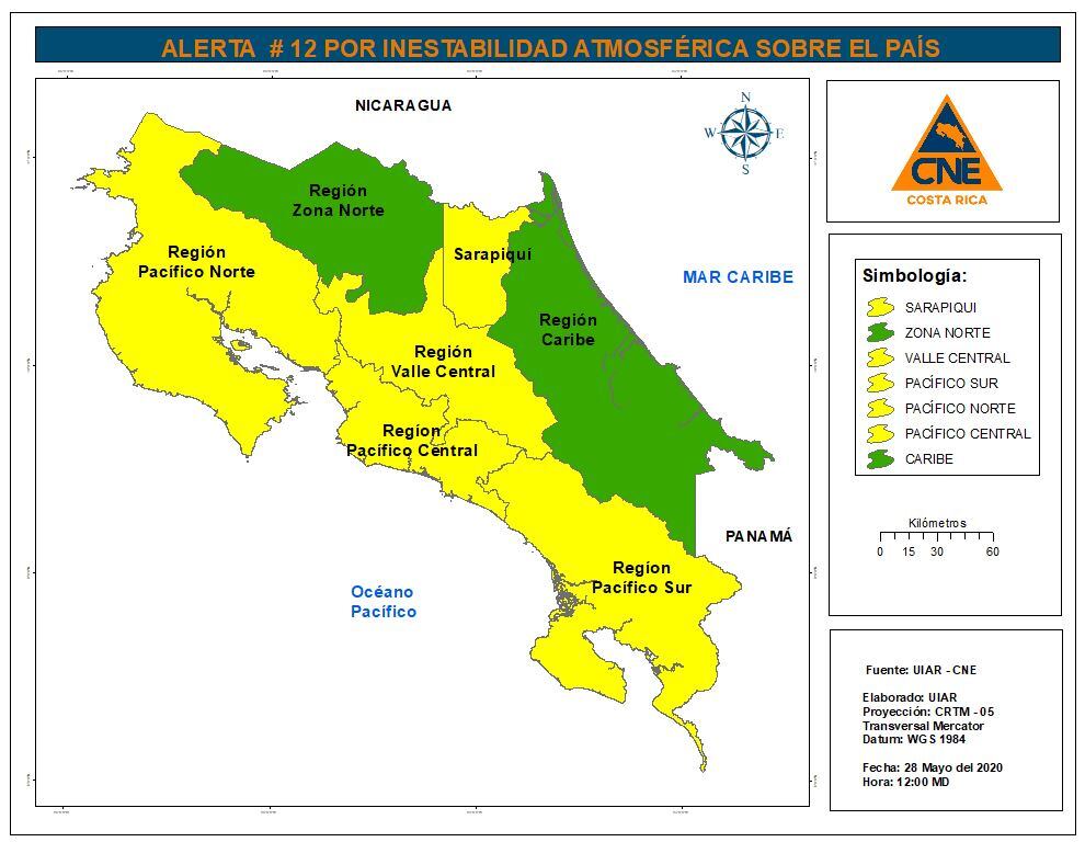 Mientras, tanto el Caribe como la zona norte están bajo alerta verde (informativa), indicó la CNE.