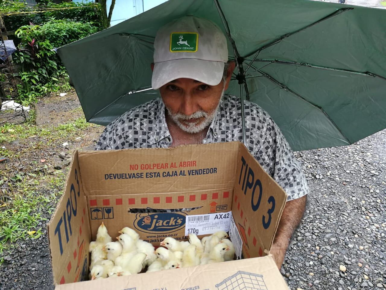 Máximo García, quien caminaba en medio del lodo y bajo el aguacero con una caja con pollitos, recriminó la falta de la atención de parte de las autoridades.