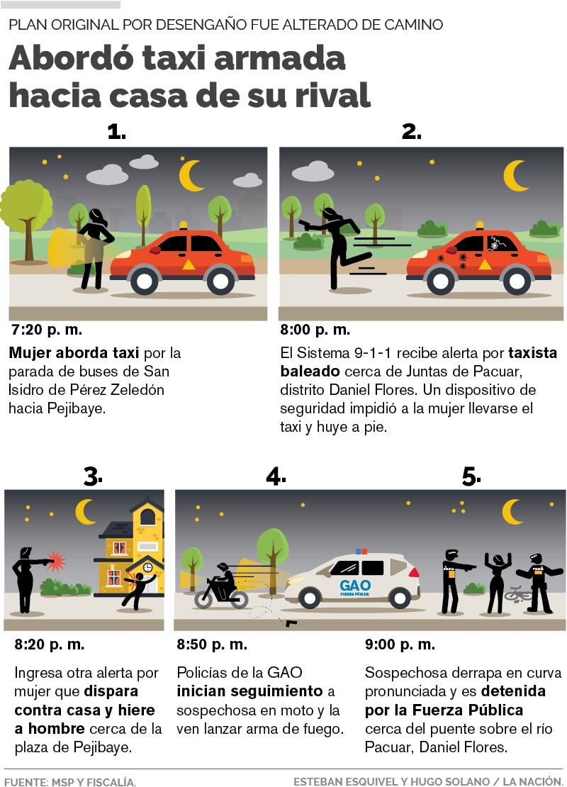 Al parecer, para lograr su objetivo, la mujer abordó un taxi en la parada de buses de Pérez Zeledón y pidió un servicio hasta Pejibaye.