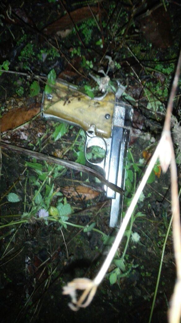 Para ese momento ya había lanzado el arma, una pistola calibre 22, a una ronda cercana, pero fue localizada por la Policía a un kilómetro antes del sitio de la captura.