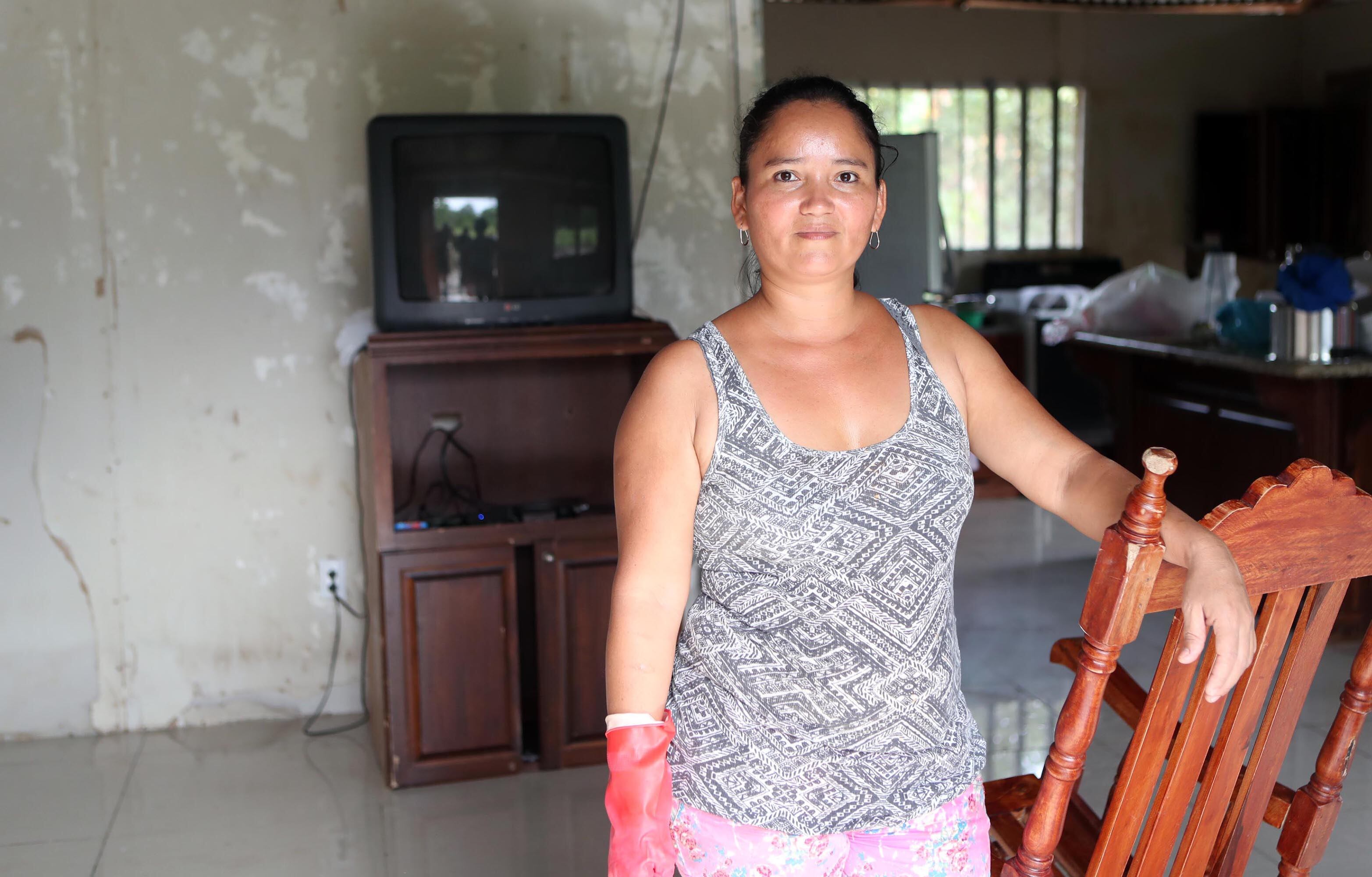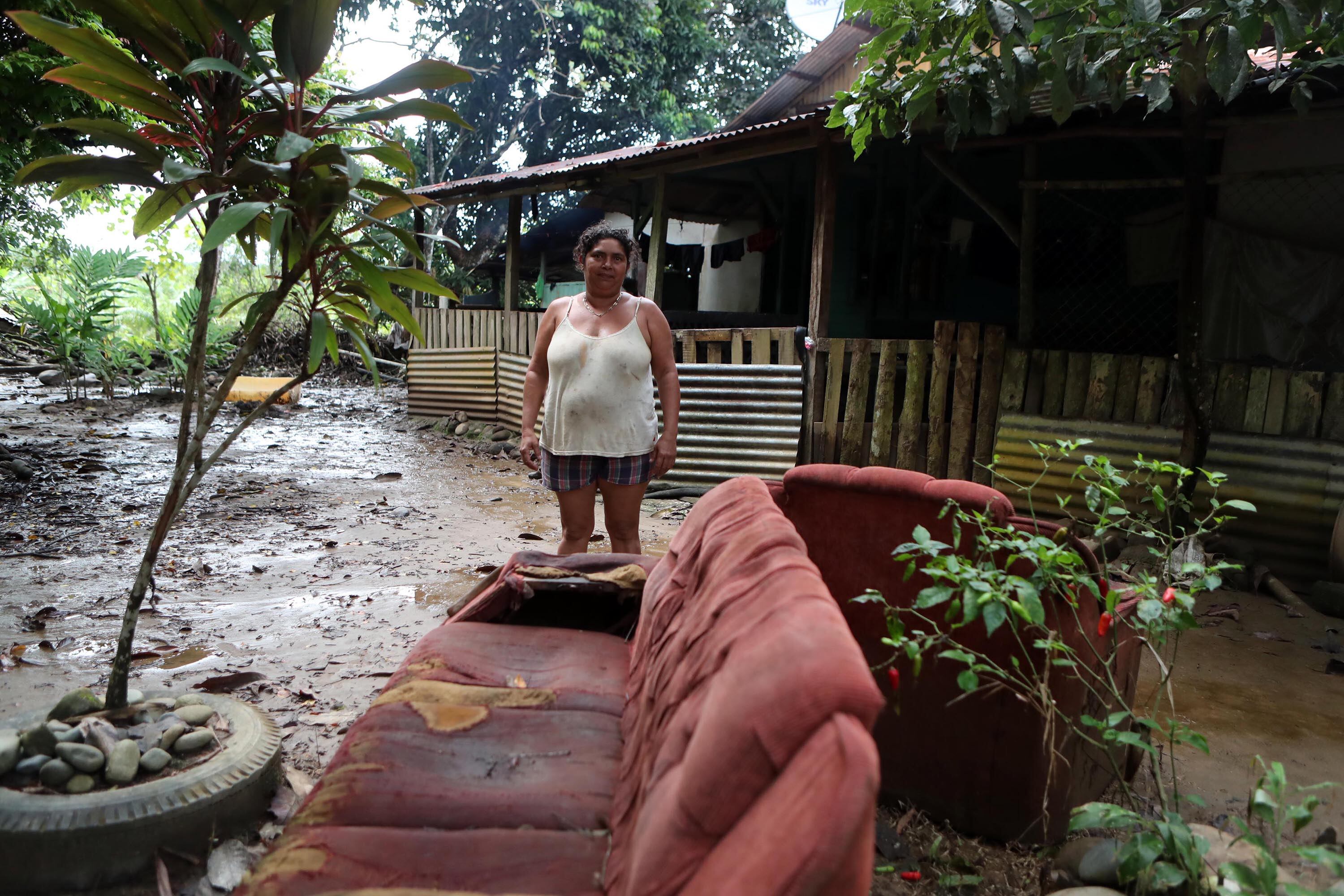En una casa cercana, en la misma propiedad, Marielos Arauz Montes, de 39 años, cuñada de Carmen, limpiaba la casa a la que el agua llegó hasta el cielo raso y dañó paredes, mobiliario, ropa, electrodomésticos y utensilios de cocina.