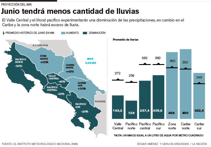En lo que respecta a los próximos tres meses, Werner Stolz indicó que junio –que es considerado uno de los meses más lluviosos del año– verá disminuidos los aguaceros en todo el litoral Pacífico y en el Valle Central.