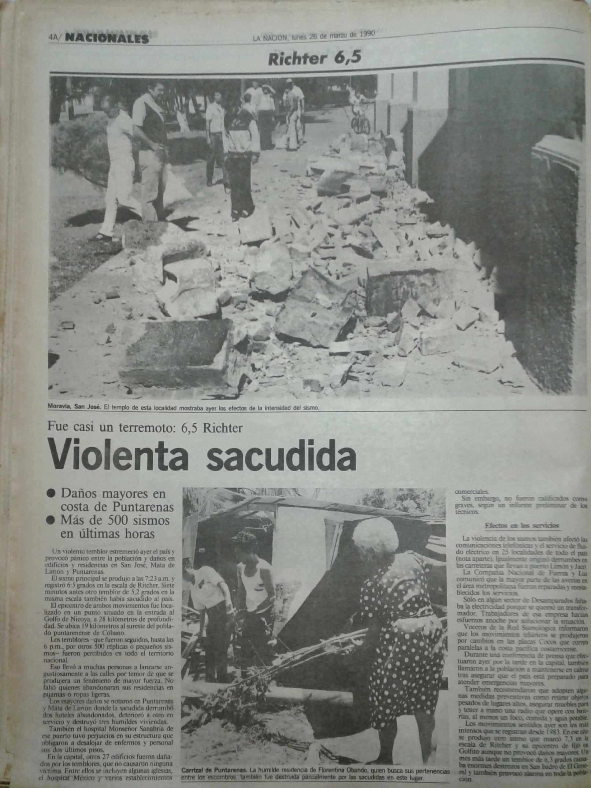 Esa vez colapsaron varias edificaciones en Puntarenas y otros tuvieron daños menores en San José. El primer terremoto sucedió a las 7:16 a. m. y siete minutos después, sobrevino el más fuerte. Luego hubo más de 500 réplicas.