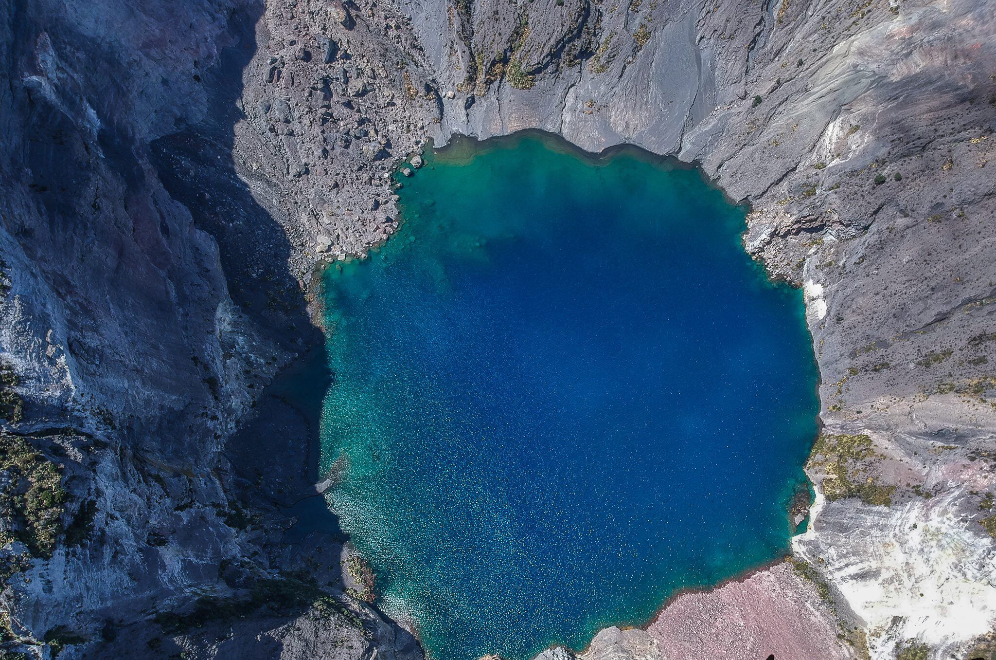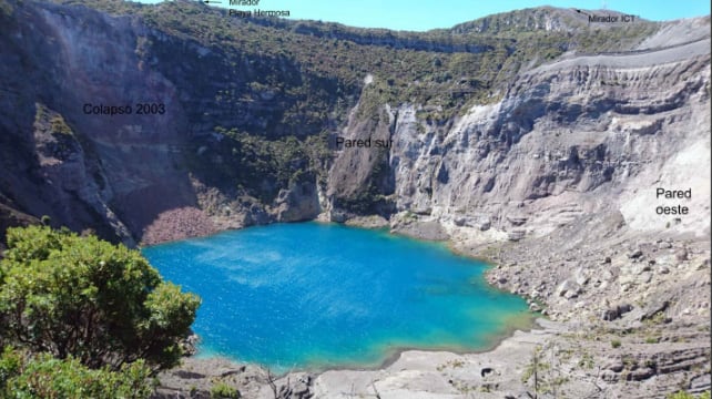 Una laguna celeste y burbujeante formada hace pocos meses en su cráter, fumarolas humeantes en varios flancos, nacientes de agua caliente con material volcánico y sismicidad frecuente son parte de las señales que mantienen en alerta a los expertos.