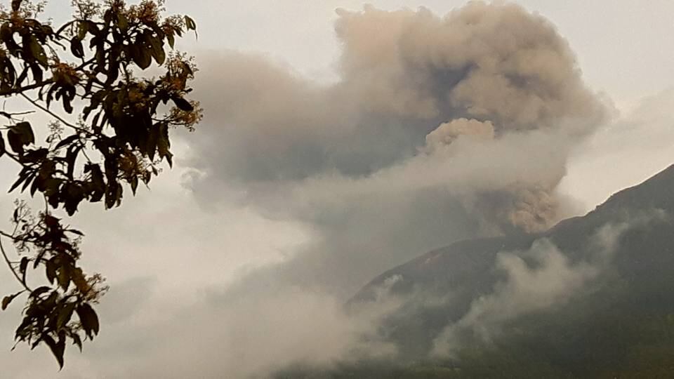 Desde San Antonio de Santa Cruz, se veía este sábado la emanación de ceniza del Turrialba. (Elieth Romero)