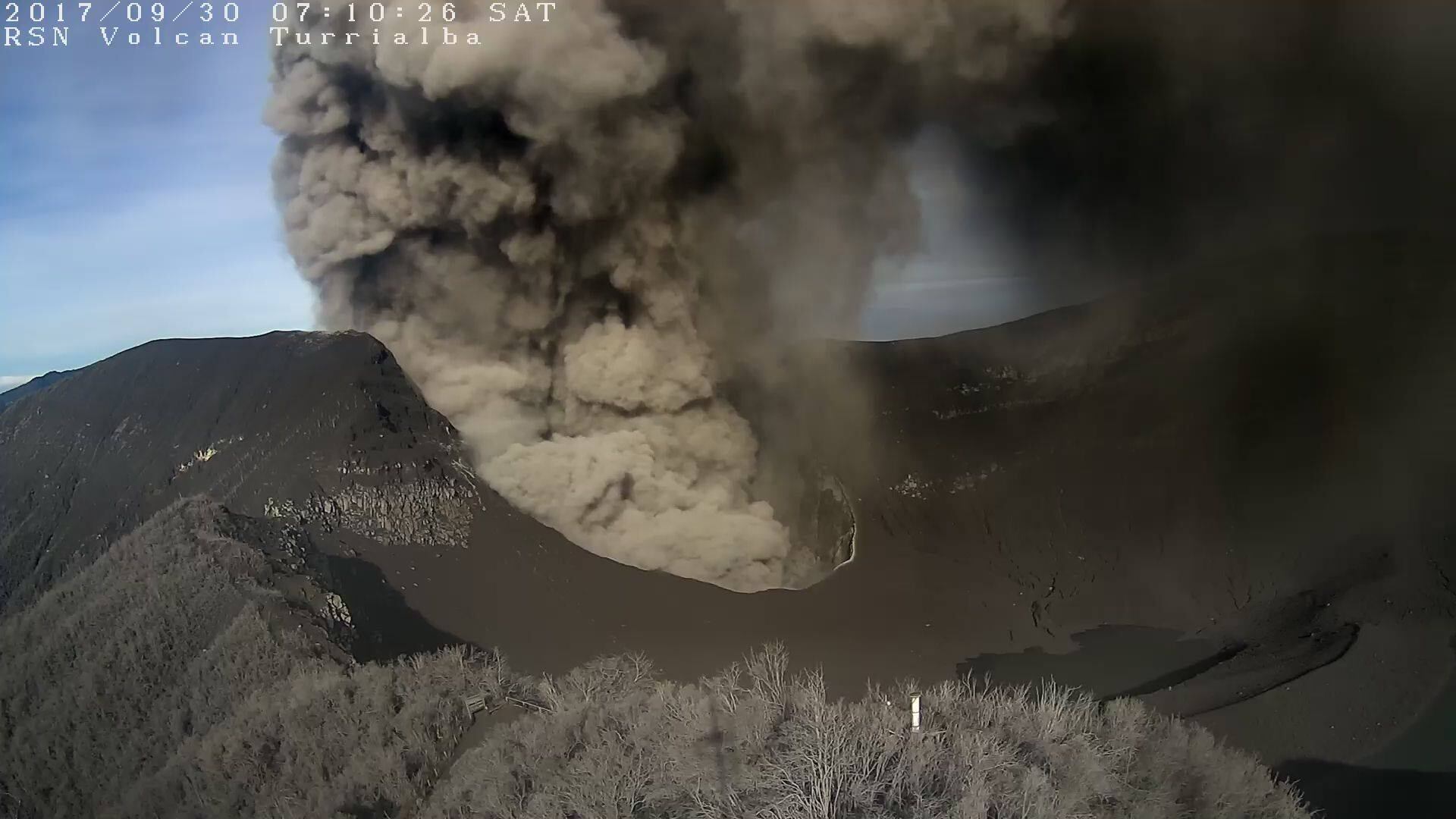 Volcán Turrialba lanza cenizas y pequeños balísticos en erupciones de este sábado