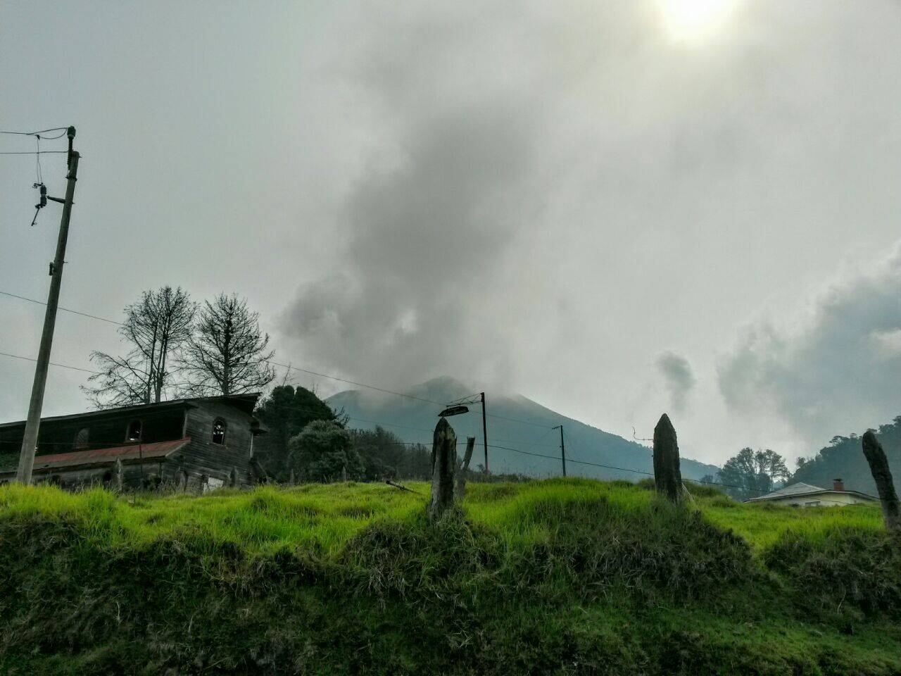 La pluma eruptiva apenas supera el borde del cráter, pero los daños en los cultivos de zonas cercanas al cráter siguen y los agricultores tratan de salvar siembras de repollo, hortalizas y frijol, entre otros, que se han visto afectadas. La población se comparte el agua para remover la ceniza de los productos y evitar pérdidas mayores