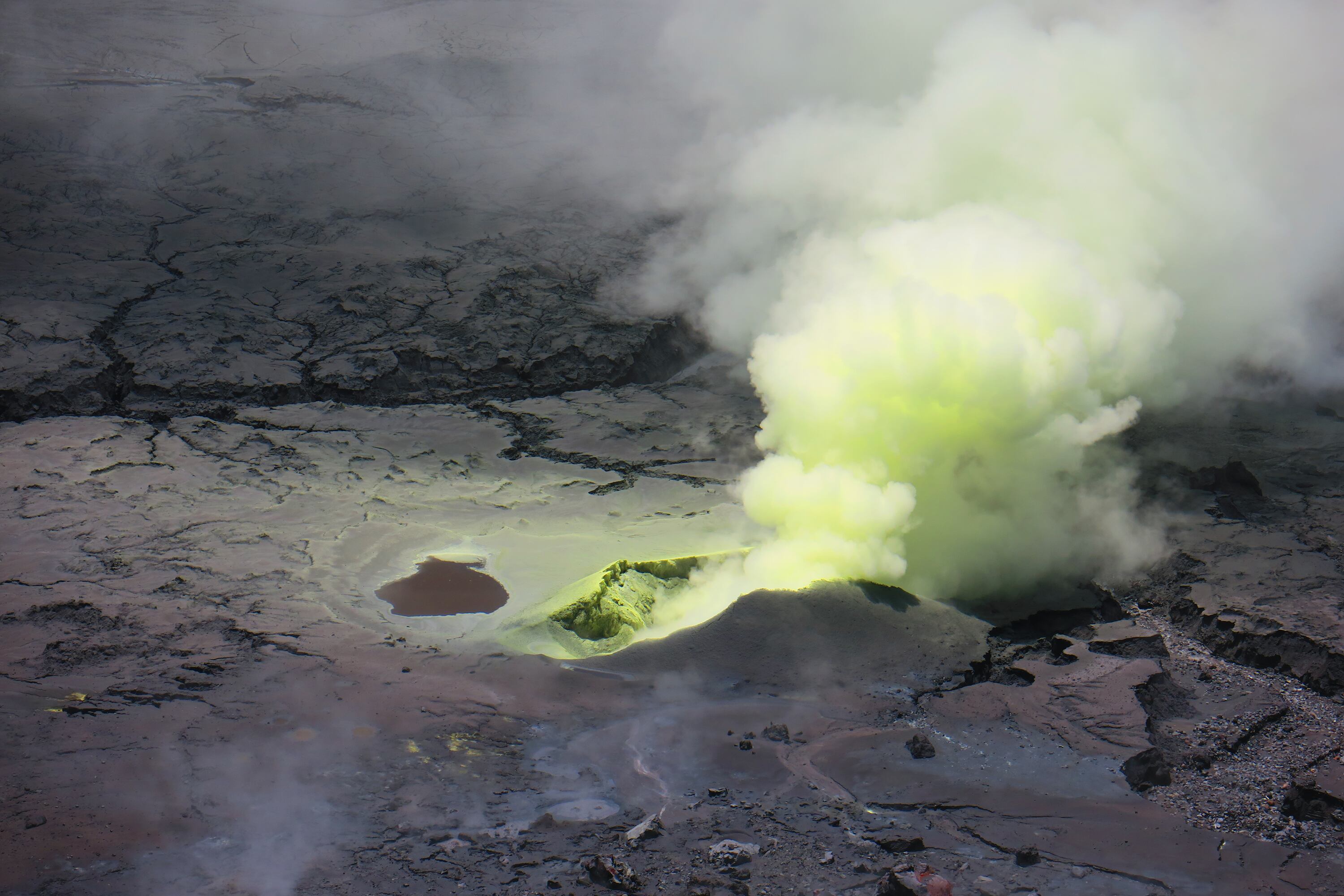 Una segunda, que la ubicó donde estuvo la laguna de agua caliente, y que ahora mantiene una constante salida de azufre; y la tercera, que es de muy reciente surgimiento, de la que solo brota vapor de agua. Empero, según su criterio, por la ubicación dentro del antiguo lago, esta última se convertirá en otro foco de expulsión de azufre.