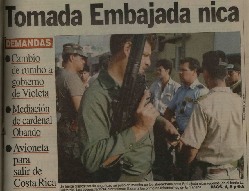 El 8 de marzo de 1993 José Manuel Urbina Lara, jefe del denominado “Comando Yolaina” retuvo como rehenes a 25 personas en la embajada de Nicaragua hasta el 20 de ese mismo mes.