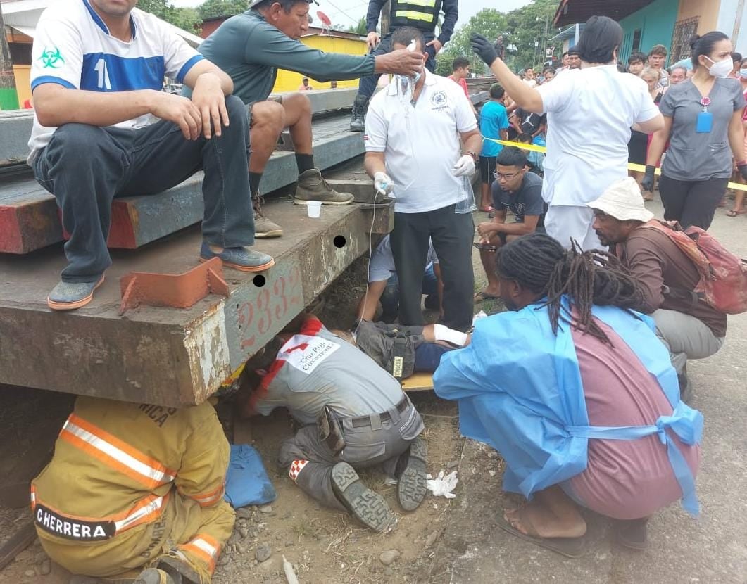 “Tuvo la suerte de que cerca del sitio había un equipo de la Caja (Costarricense de Seguro Social) que trabajaba en un Ebáis y andaba con un doctor. Ellos dieron el primer soporte. Él tenía una cabellera larga, entonces eso fue lo que se le prensó entre las ruedas y el chasis del vagón. Parte de la maniobra que tuvimos que hacer fue cortarle el pelo para poder sacarlo, ya que el médico que estaba ahí presumía que el hombre tenía una posible fractura de cráneo, por lo que era urgente llevarlo al hospital”, contó el bombero.