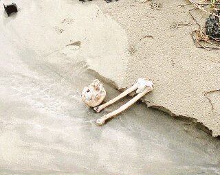 Un cráneo y huesos humanos aparecieron ayer en la salida de una alcantarilla, en playa Los Baos, Limón. Se cree que los huesos corresponden a una persona de raza negra, por el tipo de cabello. Entre las evidencias se halló unos tenis con parte de un pie adentro, una camisa y un pantalón. Un indigente halló los restos e informó del caso a la Fuerza Pública. La alcantarilla donde aparecieron los huesos recoge las aguas fluviales del barrio Roosevelt.