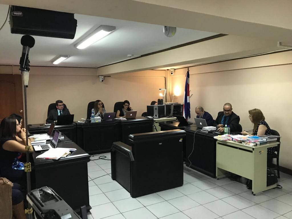 Este juicio esta a cargo de los jueces Juan Carlos Carrillo, Maybell Chévez (que preside) y Kryssia Quirós.