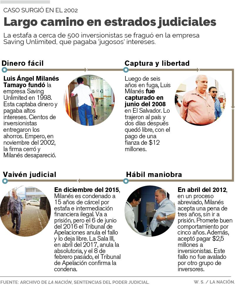 Ese arreglo no fue avalado por 350 inversionistas, quienes, acuerpados por el Ministerio Público, lograron que Milanés enfrentara otro juicio, que concluyó en diciembre del 2015. Esa vez se le sentenció a 15 años de prisión.