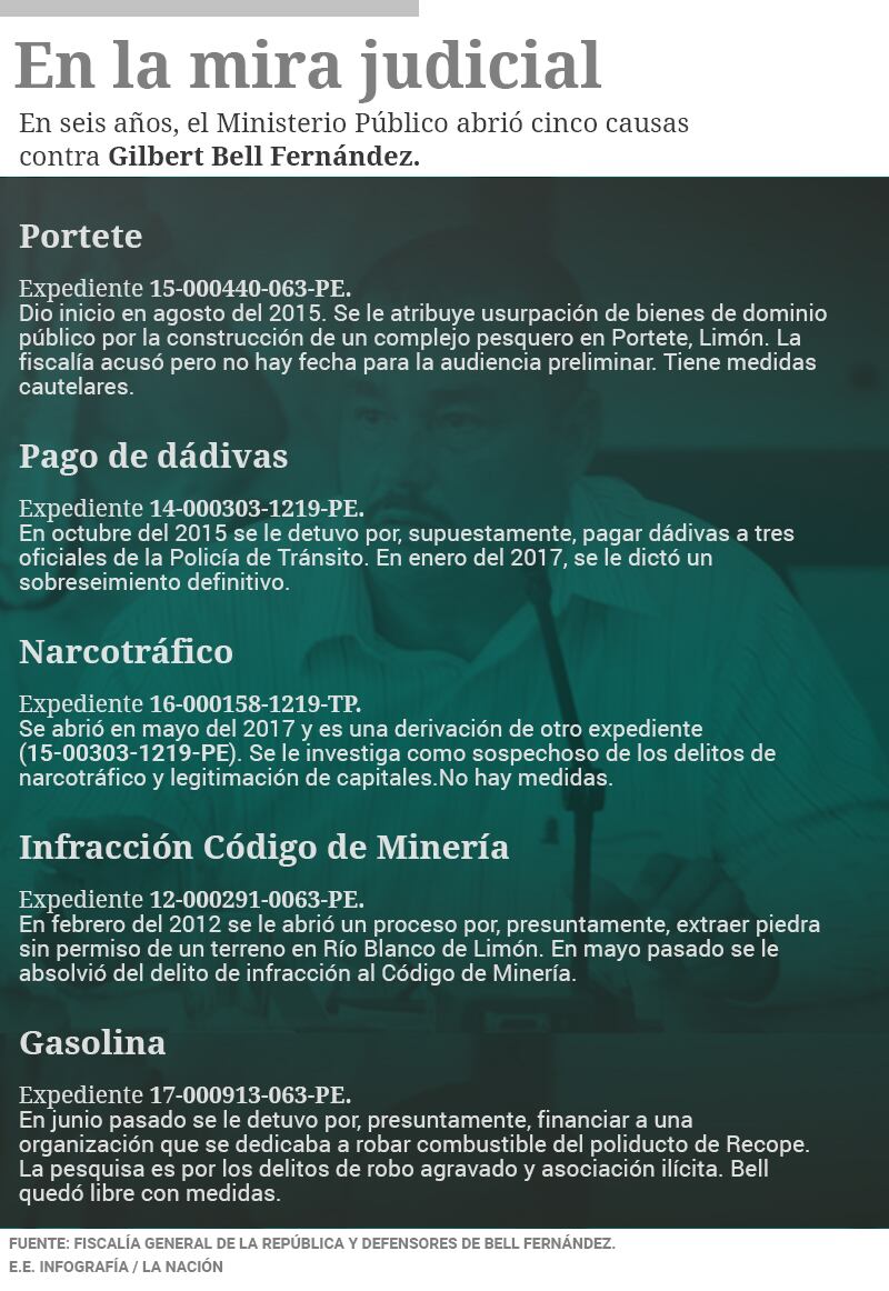 Por este caso, la Fiscalía Adjunta Agrario Ambiental abrió un proceso penal por el delito de usurpación de bienes de dominio público en el cual figuran como imputados Gilbert Bell, dos hermanos suyos (uno Bell Fernández y otro Álvarez Fernández) así como otras seis personas apellidadas Garita Lara, Rivera Salazar, Guevara Mondragón, Picado Grijalba, Lindo Roves y Buchanan Stephens.