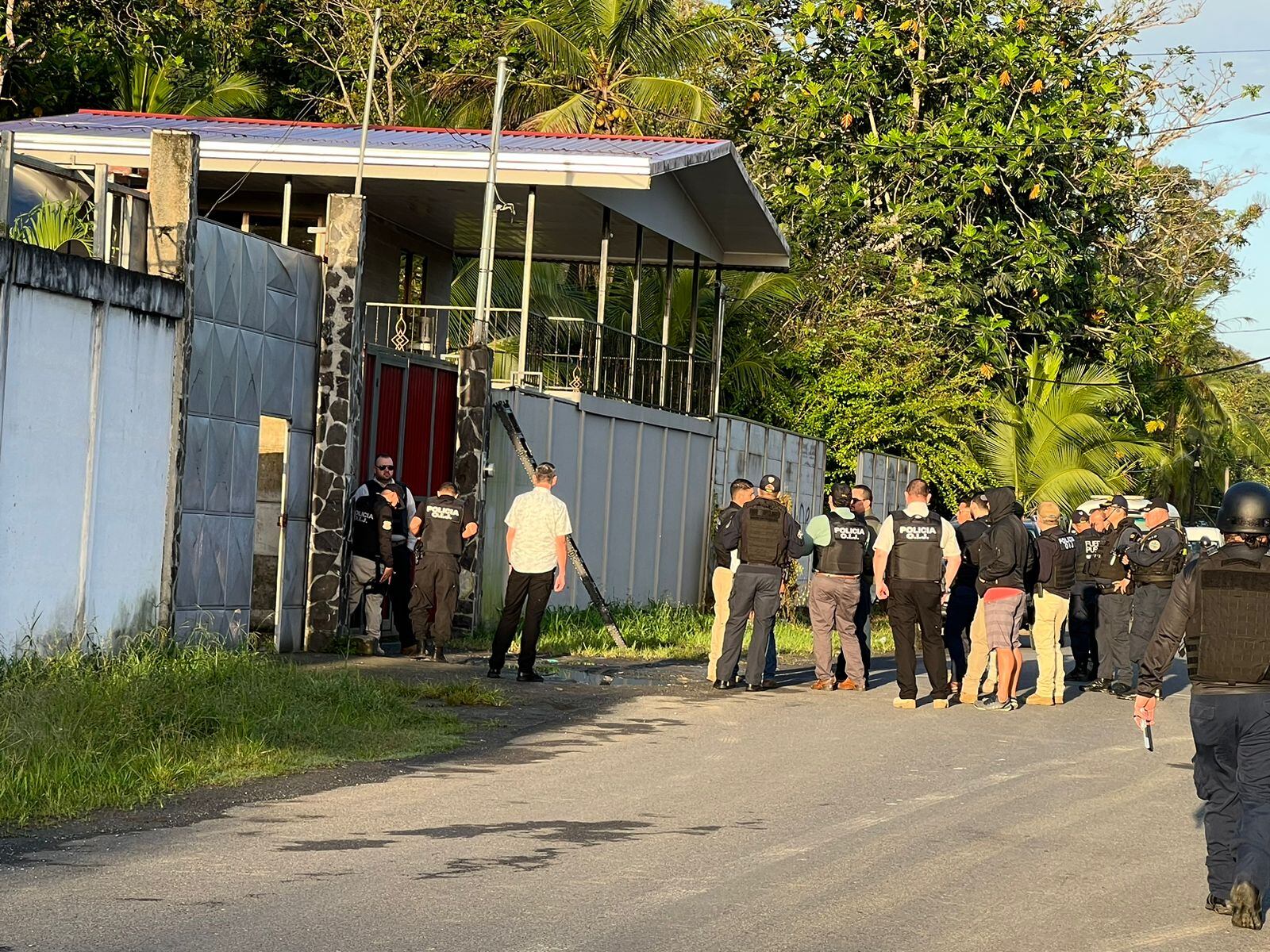 200 agentes del Departamento de Investigaciones Criminales del OIJ de San José, la Fiscalía Adjunta de Limón y varias unidades del MSP iniciaron los operativos desde las 6 a. m. de este martes. A las 10:30 a. m. enviaron la fotografía de una casa de dos pisos con muro y portón eléctrico que ya se encontraba hecha pedazos.