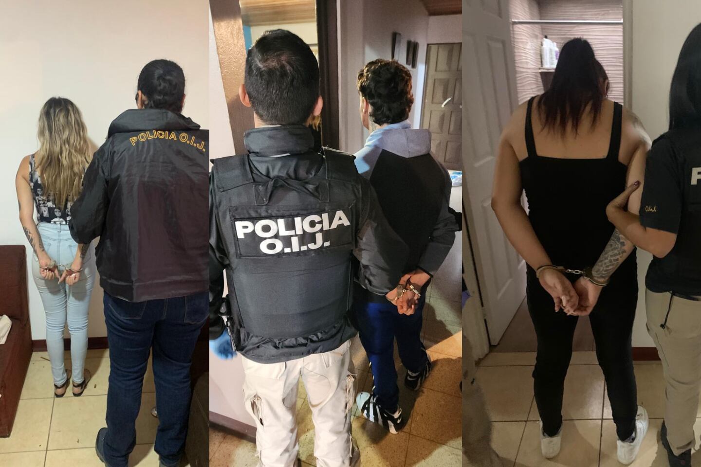 Oficiales de la Delegación de Heredia del Organismo de Investigación Judicial (OIJ) lograron la detención de cuatro de los seis supuestos miembros de la banda. Se trata del líder, de apellidos Vega Alvarado, de 25 años; y de otras tres personas identificadas como Salazar Muñoz (23 años), Padilla Umaña (20) y Zamora Romero (28).
