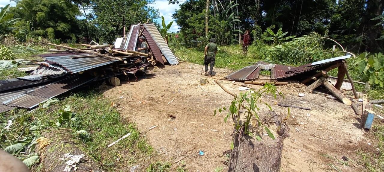 Dentro de las acciones aplicadas para desocupar el territorio se realizaron demoliciones de infraestructura y corta de varios cultivos agrícolas ilegales.