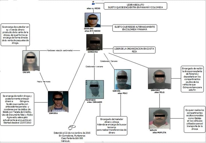 El grupo fue desarticulado el 24 de noviembre del 2015, cuando se detuvo a las siete personas, entre ellos el cabecilla, un colombiano de apellidos Góngora Quiñones que vivía en residencial Los Arcos, en Belén de Heredia. Este sujeto y otros cinco se acogieron el 4 de julio del 2017 a un proceso abreviado y fueron condenados a una pena que no fue posible conocer.
