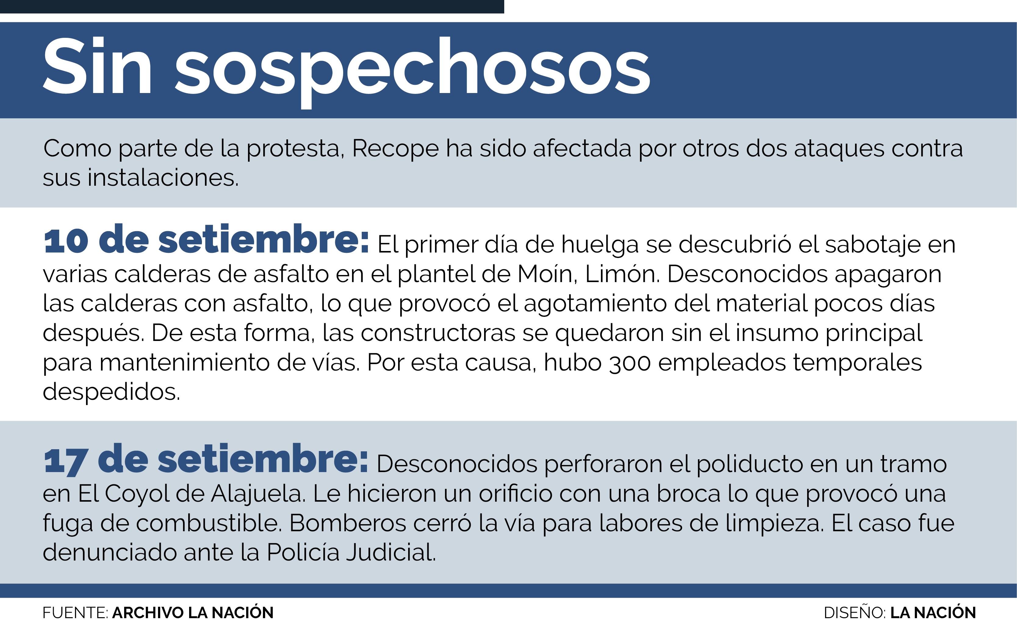 La Refinadora Costarricense de Petróleo (Recope) identificó y denunció a otro empleado en huelga como el segundo implicado en los actos de sabotaje contra las instalaciones en Moín de Limón, el 11 de setiembre, con la intención de frenar el suministro de gas al país.