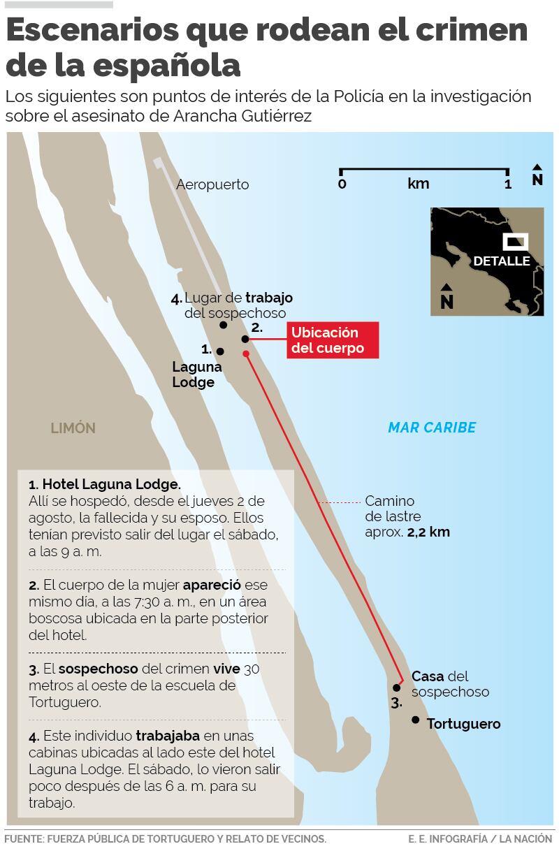 El Juzgado Penal de Pococí impuso este miércoles seis meses de prisión preventiva contra el sospechoso de asesinar a la turista española Arancha Gutiérrez López, el pasado 4 de agosto en Tortuguero.