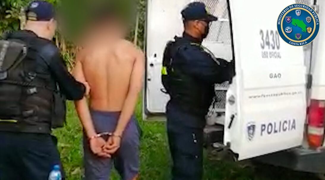 A este joven se le detuvo a las 4:30 p. m. de este sábado, luego de que él y otros cinco hombres asesinaran a un custodio y a una muchacha de 19 años cuando intentaron robar una tula que iba a dejar el camión remesero en la sucursal del Banco Nacional, en ese lugar.