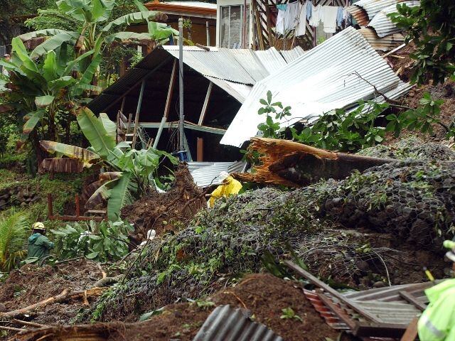 Para la Fiscalía de Atenas, un muro de gaviones que el Consejo Nacional de Vialidad (Conavi) levantó en el año 2004, sin planos ni supervisión, fue lo que provocó el alud que costó la vida a 14 personas en Bajo Cacao del barrio Fátima de Atenas en octubre del 2007.