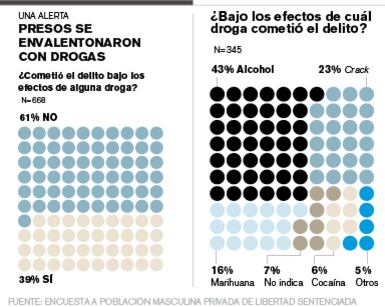 Un 39% de los privados de libertad con condena confesó que consumieron licor, crack o marihuana para cobrar valor y cometer el delito.