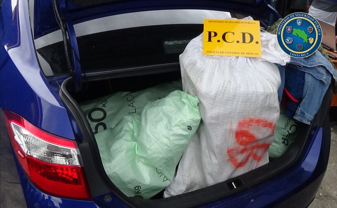 El conductor de un automóvil fue detenido la noche del miércoles cuando trasladaba 44 kilos de marihuana de Limón hacia San José, durante el horario de restricción vehícular.