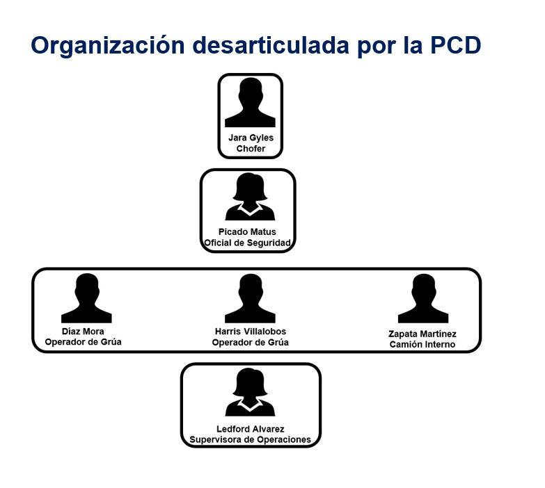 - Zapata Martínez (37 años) con antecedentes por homicidio culposo, accionamiento de arma y en cuatro ocasiones por agresión con arma, violencia física, violencia psicológica, infracción a la Ley de Flora y Fauna. Conductor de los camiones internos de APM, encargado de trasladar el contenedor de su posición original a otra.
