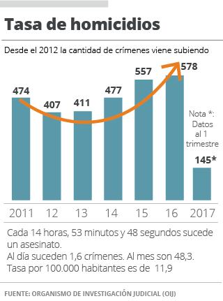 Durante el 2016 fueron perpetrados 578 crímenes, de los cuales, un 23% (125) se debió a ajustes de cuentas por narco. Empero, todavía se analizan otros 53 casos que podrían engrosar la cifra, dijo Michael Soto Rojas, subdirector a.i del OIJ.