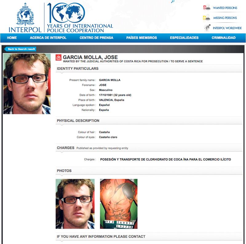 El español García Molla era buscado por Interpol por solicitud de Costa Rica.