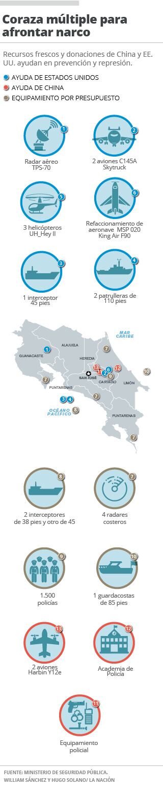 Además, Costa Rica espera recibir el año entrante una partida directa del presupuesto de Estados Unidos por $30 millones (unos ¢16.500 millones) para la lucha antinarco.