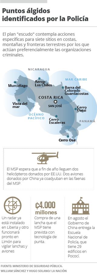 El Gobierno planea dejar activado, el año próximo, un escudo de vigilancia aérea, marítima y terrestre con la finalidad de frenar el creciente trasiego de droga por Costa Rica y la ola de violencia desatada por las bandas narcotraficantes.