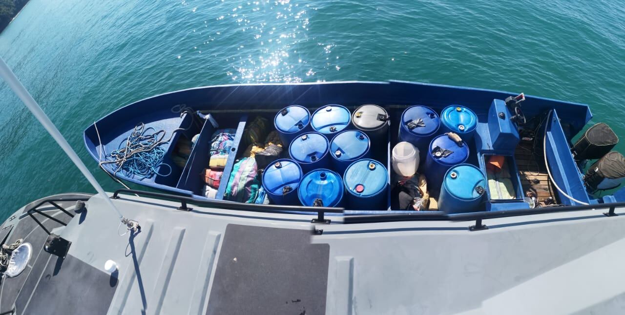 La embarcación confiscada es de dos motores, de 200 caballos de fuerza, sin nombre, ni matrícula. Dentro de ella las autoridades también hallaron 12 estañones de color azul sin combustible, por lo que se investiga si iban a cargar hidrocarburo o si lo habrían entregado a otro navío. Los estañones también fueron incautados.