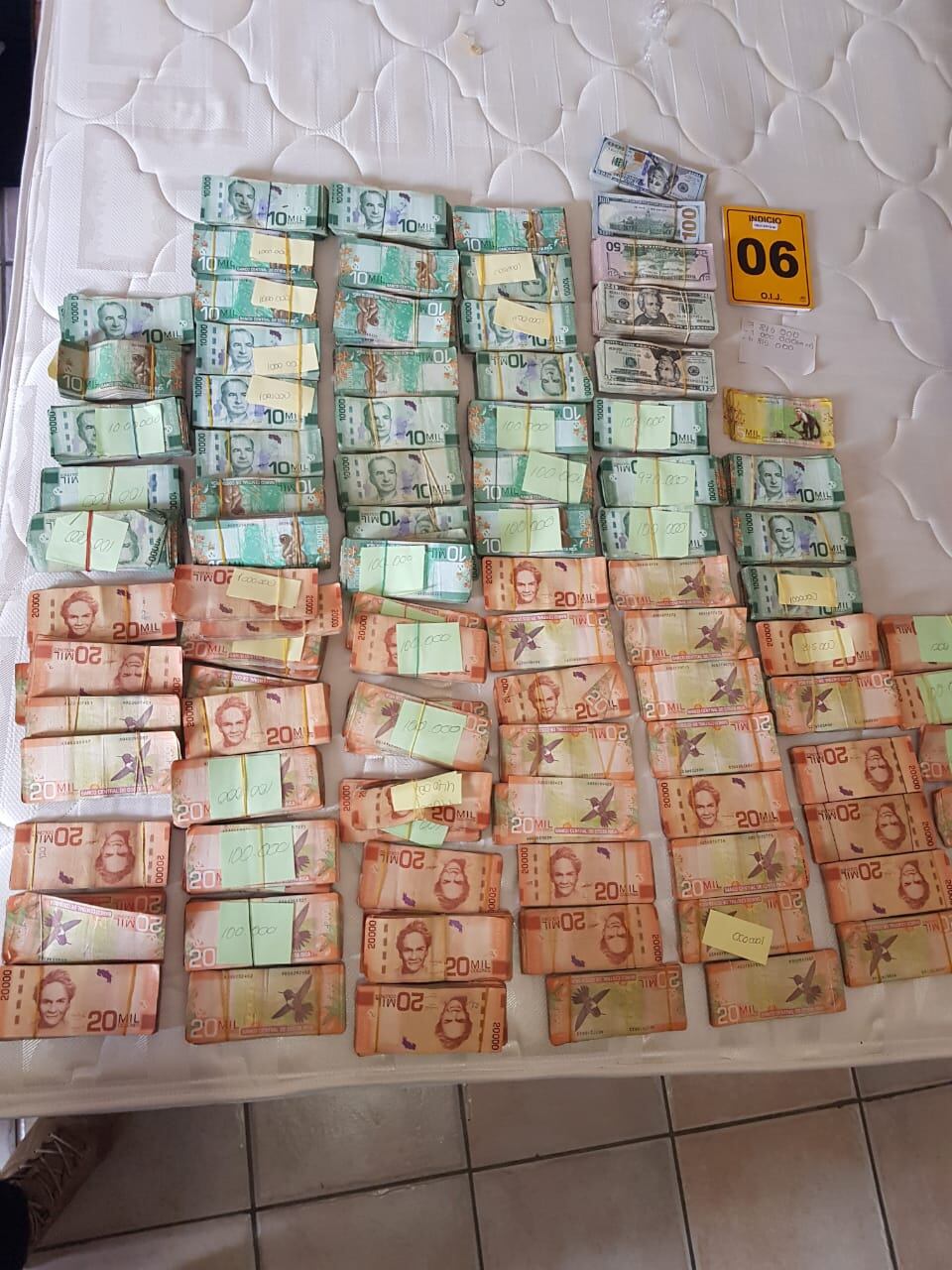 El sábado, agentes judiciales junto con un fiscal y un juez, allanaron el apartamento del implicado donde encontraron otros 170 kilos de cocaína. Asimismo, había ¢96 millones y $50.000.