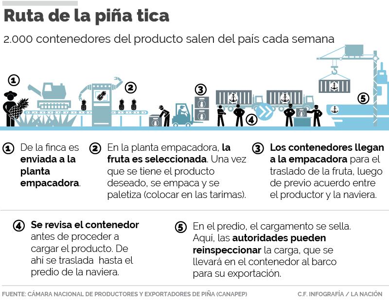 “El daño que le están haciendo no solo al país por la imagen sino propiamente al sector (es grande). Esto nos puede llevar a que el país pierda competitividad. Puede originar que en los países adonde está ingresando piña de Costa Rica, para ellos tener mayor seguridad, pasen por escáneres (los cargamentos) y esto podría resultar en un costo adicional para la industria”, expresó Chaves al ser consultado por La Nación.