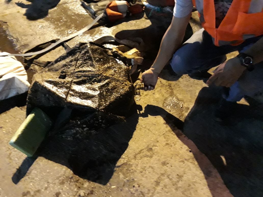 El informe detallaba que la droga estaba pagada al casco, por lo cual buzos del Servicio Nacional de Guardacostas (SNG) procedieron a realizar la inspección, localizando un bulto en una parrilla de popa, es decir en la parte de atrás de la embarcación.