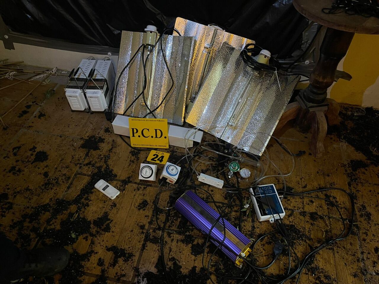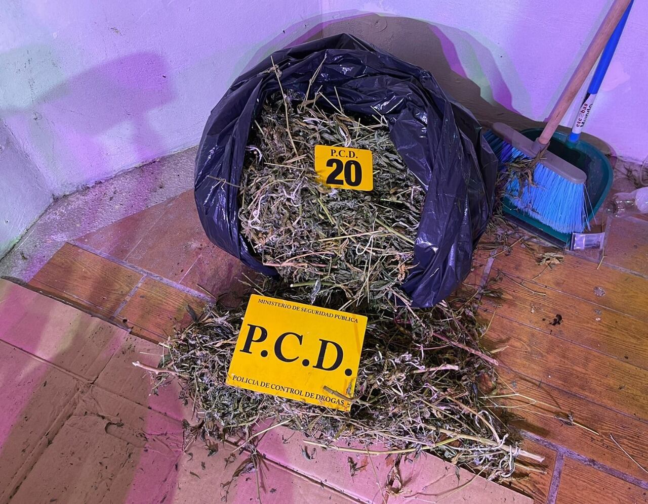 En la operación antidogas investigadores de la PCD decomisaron en marihuana un total de 1.038 dosis, 132 plantas con una altura de hasta 155 centímetros y cinco dosis de capullos, además ¢66.000, $50, residuos de marihuana y gran cantidad de artículos con los que se componía el laboratorio e implementos para almacenar y distribuir la droga.