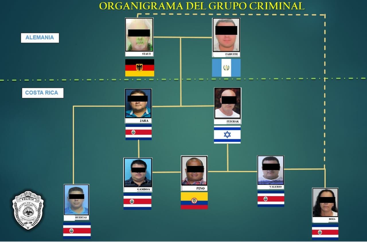Los detenidos responden a los apellidos Pino Cortés, Jara González, Valerio Hidalgo, Gamboa Cordero, Boza Abarca (mujer) y Huertas Cedeño.